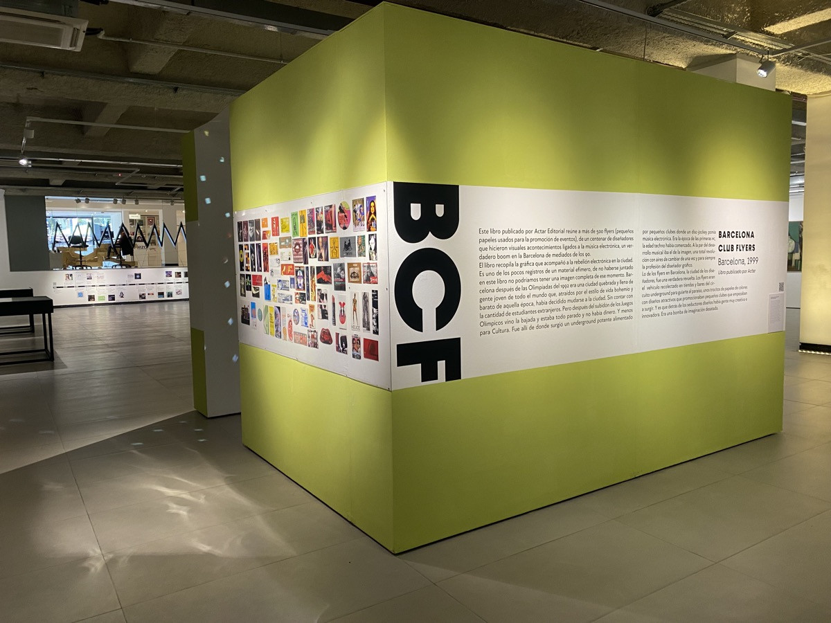 2. Un libro de escala humana en el que se puede entrar y escuchar música seleccionada por Gato Ficcardi: una playlist construida a partir de los flyers de los 90, acompañada por una bola de espejos que refuerza la atmósfera bolichera.